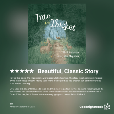 Gail Kuhnlein is “as happy as a lark” to publish her first children’s picture book. She’s been writing stories since she was young. She’s just as excited about her new picture book, Into the Thicket, summarized on the books page.