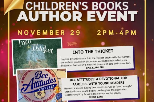 Gail Kuhnlein, Becky Lane and Megan Haley, local picture book authors, will sell and sign their books, and be available for questions and discussions. Gail brings Into the Thicket and How Happy Is a Lark? Becky has Bee Attitudes: A Devotional for Families with Young Readers. Megan’s books are The Little Dandelion: A Tale of Perseverance and The Worry Balloon: A Story for Little Worriers. Also, there will be a coloring contest and ornament decorating for the kids.